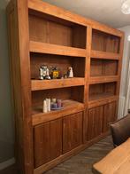Prachtige, massief teakhouten kast in goede staat. Deze ruime kast van 230 bij 230 cm biedt veel opbergruimte met zowel open vakken als dichte kastjes. Ideaal voor de woonkamer, studeerkamer of als bo