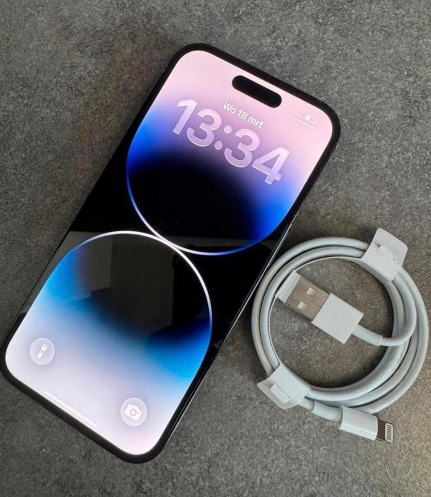 Een iphone 14 pro max met 128 gb opslag. De batterijconditie is 84%. Je krijgt er een hoesje, screenprotector en kabel bij.