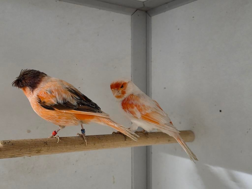 Koppel kleur kanaries rood mozaïek man x rood bont pop gekuifd 2023 x 2023 zie foto's zaterdagochtend geopend tussen 10.00 En 12.00 Uur