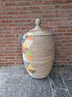 Prachtige turquoise witte afrikaanse fairtrade mand van zeegras handgemaakt in senegal. Je kunt hem gebruiken als mand, speelgoedmand in de kinderkamer, mand om te dekens in op te bergen of gewoon alsNieuw Ophalen of Verzenden
