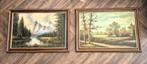 Twee landschapsschilderijen - olieverf op doek - gouden rand
