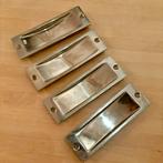 4 glimmend metalen handgrepen voor schuifdeuren gebruikt, maar in zeer goede staat prijs per 4 € 25 (nieuwprijs ong. €15 per stuk)