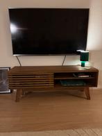 Stijlvol houten tv-dressoir in goede staat. Dit dressoir heeft een moderne uitstraling met een unieke lamellen schuifdeur, perfect om apparatuur netjes uit het zicht te houden. Aan de rechterkant beviZo goed als nieuw Ophalen of Verzenden