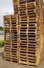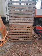 Grote hoeveelheid pallets gratis op te halen. De pallets zijn van hout en liggen opgestapeld buiten en in een trailer. De foto is ter illustratie.