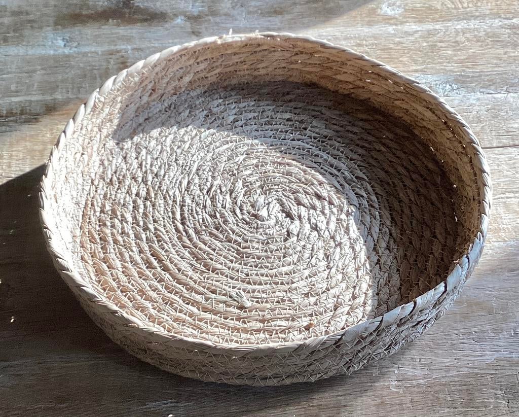 RIETEN DIENBLAD RONDE GEVLOCHTEN MAND