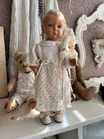 Een antieke shabby donkere franse jongens pop 43 cm lang. Is een sleetse pop dus je moet er wel van houden, bij een van zijn handje is een pinkje weg, bij zijn armpjes die zijn er aangenaaid door iemaGebruikt Ophalen of Verzenden
