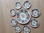 Bieden! Mooi groot makkumer aardewerk bord met 8 kleinere bordjes, (1 ervan heeft een ophangsysteem). 1 Klein bordje heeft een kle
