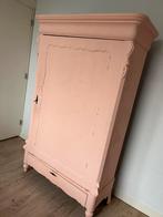 Superleuke meidenkast, roze en vol karakter! Vintage kast, 176,5 cm hoog x 111 cm breed x 47 cm diep. Ooit grijs, nu roze (verfpro