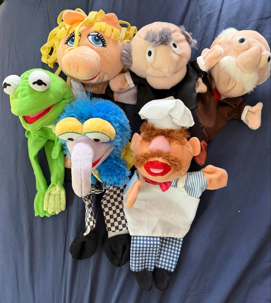 Complete set van 6 muppet show handpoppen, ooit gespaard bij albert heijn. De set bestaat uit kermit de kikker, miss piggy, gonzo, de zweedse kok, statler en waldorf. Ze zijn in gebruikte, maar goede Gebruikt Ophalen of Verzenden