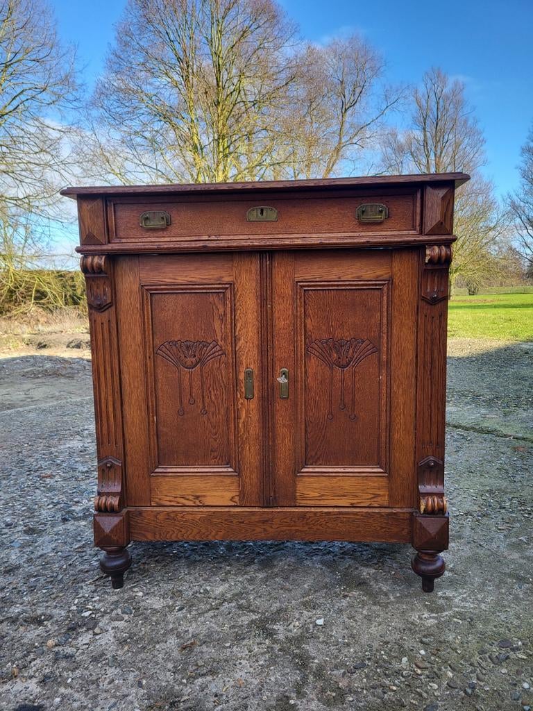 Antiek eikenhouten meidenkastje, commode.