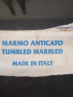 54 getrommelde marmeren tegels. De tegels zijn geschikt voor diverse toepassingen, zoals vloeren en wanden. De tegels hebben een rustieke uitstraling door het getrommelde oppervlak. Afmeting: 10 x 10