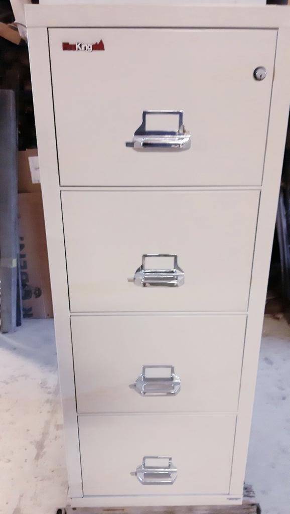 Fire king fk4 - 21 , 4 ladenkast, brandwerend en inbraakwerend. Inclusief sleutel. 7 Stuks beschikbaar. In zeer goede staat. Prijs per stuk. Heftruck aanwezig, kast weegt ongeveer 240 kg staat reeds oZo goed als nieuw Ophalen