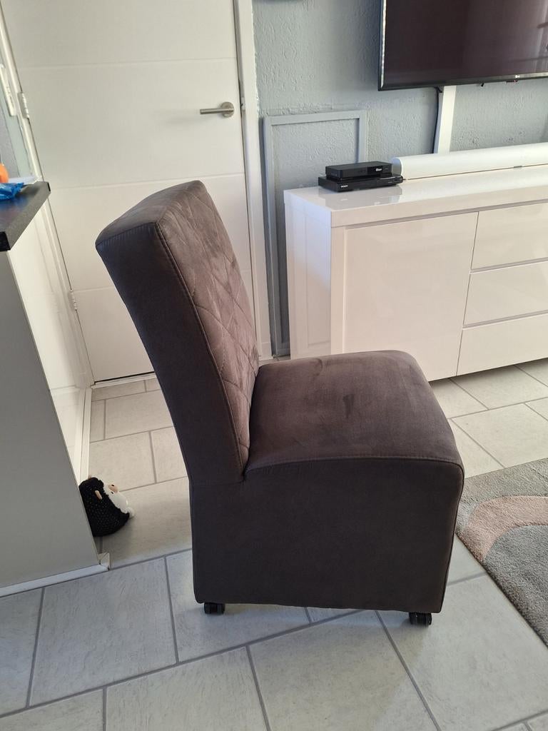 Te koop 4 x mooie eethoek stoelen van stof kleur bruin zijn in goeden staat gaan weg wegens int verandering