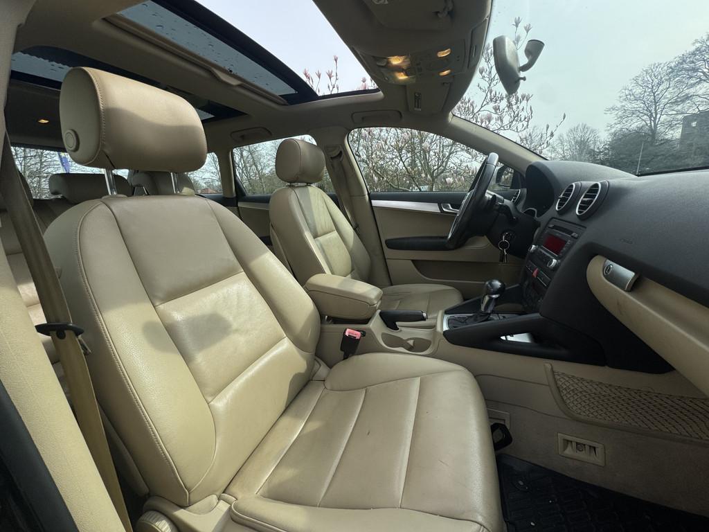 Audi A3 SPORTBACK 2.0 FSI TURBO AUT 200 PK, LEDER, PANORAMADAirco automatisch, airconditioning, volautomatisch (9ak), cruise control, elektrisch glazen panorama-dak, lichtmetalen velgen 17", open sky system (3fb), stoelen, vóór verwarmbaar (4a3), voorstoe