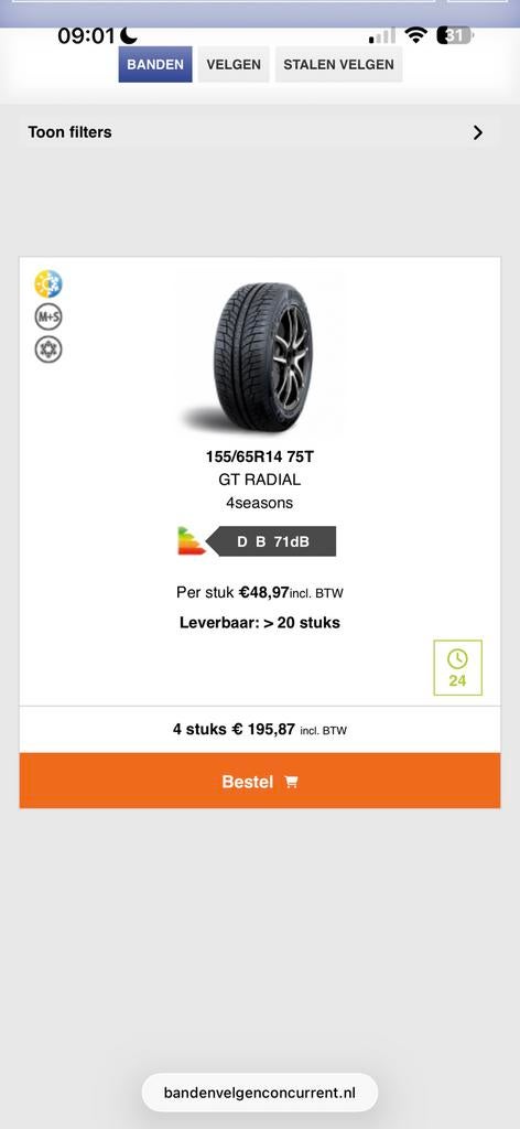 De banden en velgen concurrent in Zoetermeer