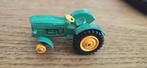 Matchbox nr 50 en 51 john deere tractor met aanhanger gevuld met bussen uit de jaren 60. Van de tractor mist één achterwiel.