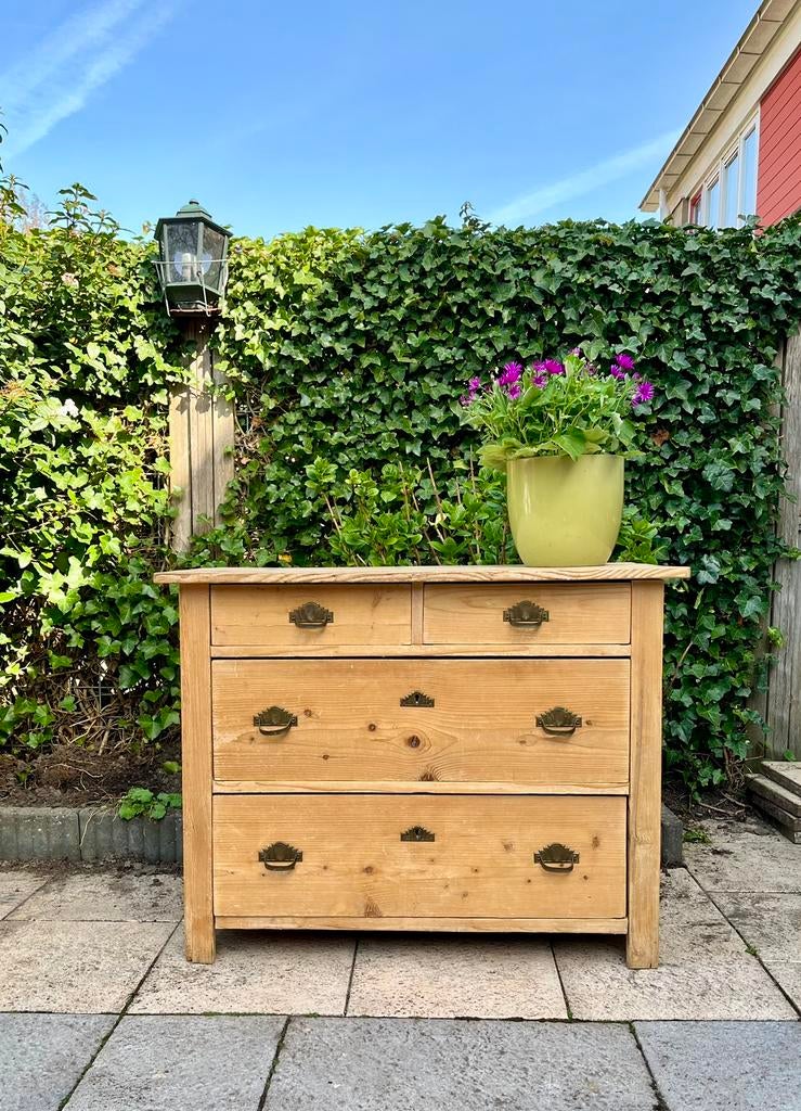 Antiek grenen ladekast | commode met de originele handgrepen