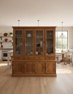 Teak buffetkast vitrinekast de afmetingen van de kast zijn ingetekend in de 3e afbeelding. Aan de bovenzijde bevinden zich 4 glazen deuren, die afgesloten kunnen worden doormiddel van een sleutel, en