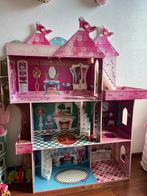 Prachtig groot poppenhuis voor barbies, lol oid. Bovenop een paar vlekken van een plantenpot. Aan de zijkant een sticker geplakt e