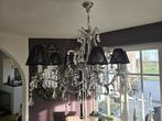 Mooie grote kroonluchter met 2 bijpassende wandlampen. De set is in goede staat. Er ontbreekt 1 hangertje aan een wandlamp (zie foto). Gaat weg wegens aanschaf nieuwe lampen. Leuk in landelijk of klas