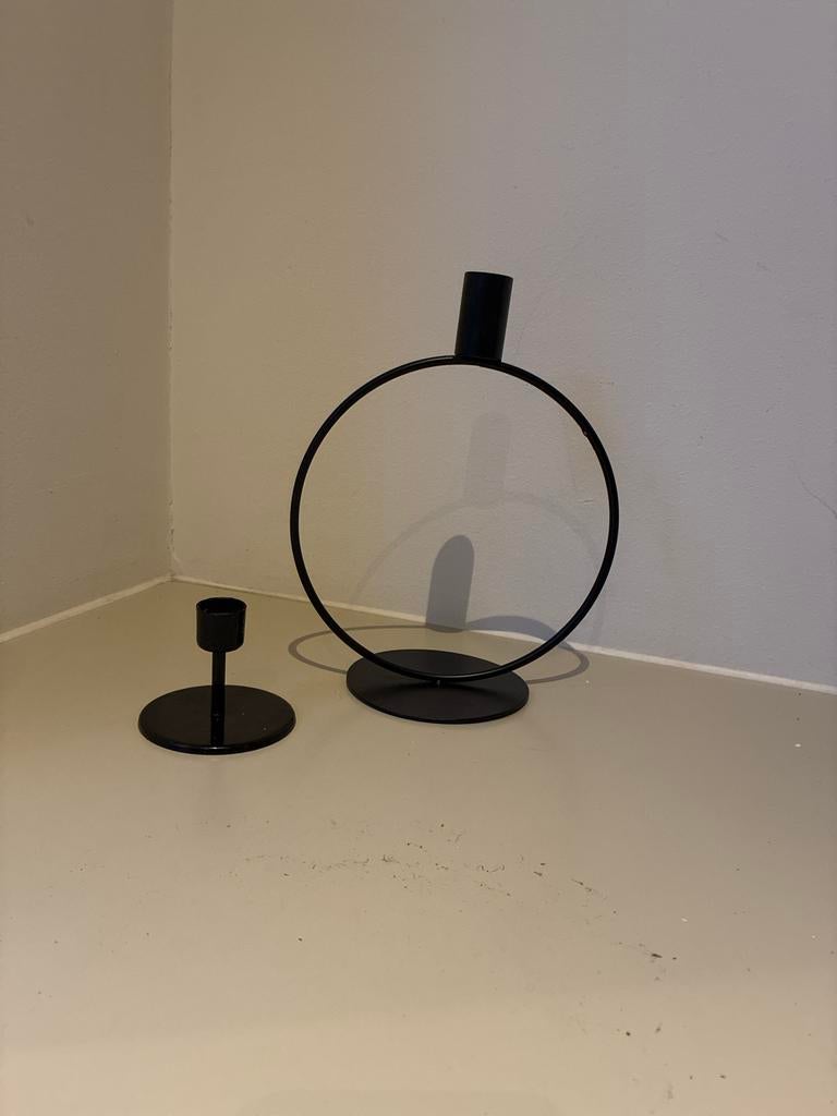 Twee stijlvolle metalen kaarsenstandaards.