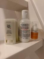 Pakket met diverse cosmetische producten. Bevat kiehl's ultra facial moisturizer, ren brightening dark circle eye cream en beauty of joseon matte sun stick. Ideaal voor gezichtsverzorging en besch
