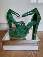 Prachtige groene glitter sandalen met hak, perfect voor de feestdagen, een kerstfeest of een bruiloft. Maat 40, nieuw. Hakhoogte 10 cm. Voor mij helaas te hoog.