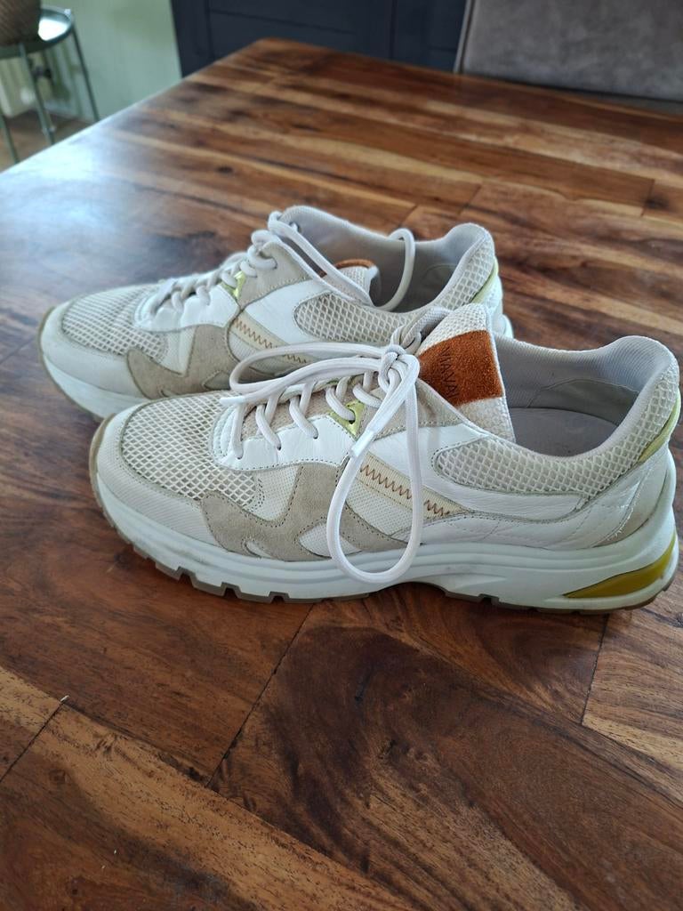 Mooie via vai sneakers in maat 41. De sneakers zijn gedragen, maar zien er nog goed uit. Ze zijn comfortabel en perfect voor dagelijks gebruik. De schoenen hebben een beige/witte kleur met groene acceGedragen Ophalen of Verzenden