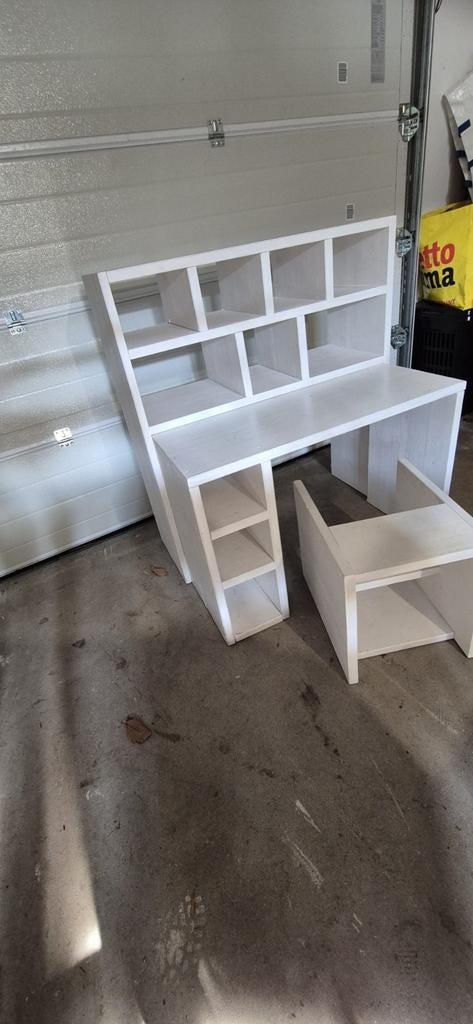 Pedicure bank/tafel met klein trapje hij is ongeveer 5 jaar oud. Maak van hout en zit 1 laagje grondverf op. Zitten een paar kleine vlekjes op. Ziet er verder helemaal netjes uit.de maten staan bij de