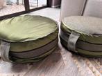 Twee groene zitpoefs in zeer goede staat. Ze kunnen samen of apart gekocht worden. Ideaal als extra zitplaats of voetenbankje. De