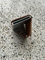Handige kaartjeshouder/portemonnee. Biedt ruimte voor meerdere kaarten en briefgeld. Gemaakt van leer en aluminium. Met knipsluiti