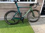 Custom carbon racefiets tekoop, uitgerust met hoogwaardige componenten. Speciale kleurencombinatie. Fiets is uit 2023 met een eigenaar. Het betreft een aero racemonster met een top wielset die profs oZo goed als nieuw Ophalen