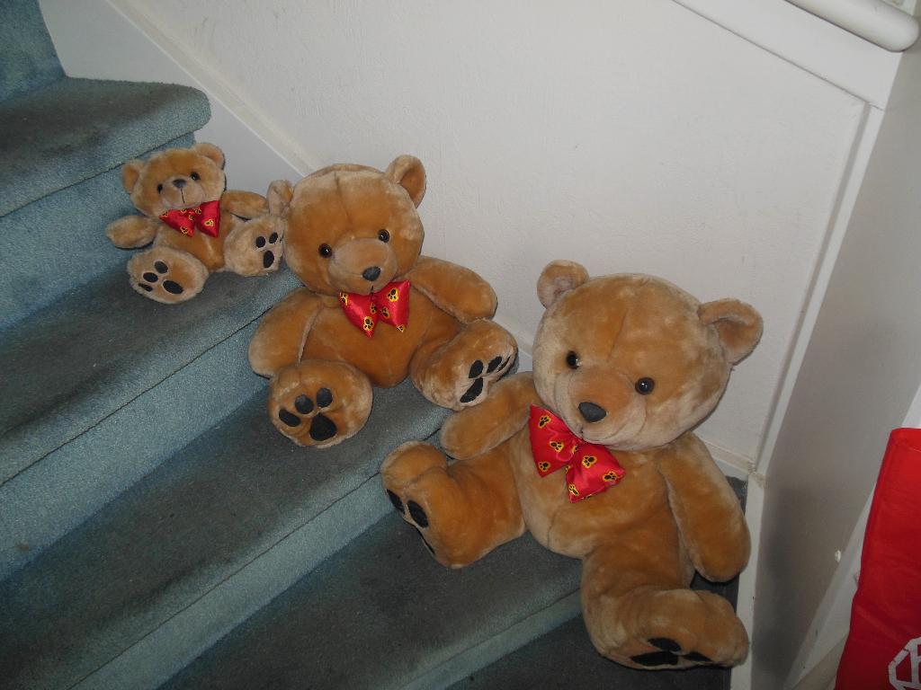3 stuks beren uit de big foot familie, afmeting zittend: 18. 33 En 41 cm zo goed als nieuw, nooit mee gespeeld, altijd voor de sier op een kast gestaan. Samen voor 20 euro wie doet er een leuk bod op