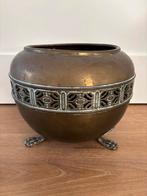 Bloempot of cachepot messing/koper op pootjes, voor de afmetingen zie de foto’s. Bij versturen verzendkosten en risico voor de koper.