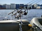 Nieuw rvs (meerval ) hengelsteunen voor 1, 2 of 3 hengels. Deze zijn makkelijk aan de spiegel te bevestigen en leunt met de arm op