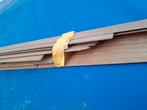 Partij teakfineer in diverse diktes en breedtes ca 15 stuks van 1200 mtr lang