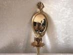 Mooie koperen wandkaarsenstandaard met bovenaan een ovale spiegel. De kaarsenstandaard is uit de 70er jaren van de vorige eeuw en is 27 cm lang. Bieden vanaf 79,95 euro exclusief verzendkosten. 16/17/