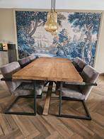 Wij verkopen deze zware massief eikenhouten eettafel van de serie brooklyn van happy home. Afmetingen zie foto's ongeveer 3jaa