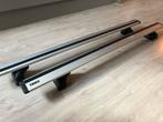 Twee thule dakdragers, zilverkleurig met zwarte accenten. We hebben deze met plezier gebruikt op onze renault mega estate. Maar ivm aanschaf andere auto, mogen ze weg.