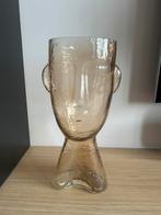 Vaas met gezicht, lichtbruin. Hoogte 32 cm. Diameter bovenaan 13 cm.