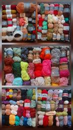 Te koop: een groot lot van 150 bollen haakgaren van goede kwaliteit. Verschillende kleuren en merken. Ideaal voor diverse haakprojecten. Allemaal goede kwaliteit zoals o.a.: Catona durable mr cey yarn