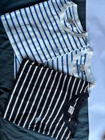 2 wit met kobaltblauwe streepjes 1 zwart met witte strepen in zeer goede staat! Prijs is voor 3 shirts