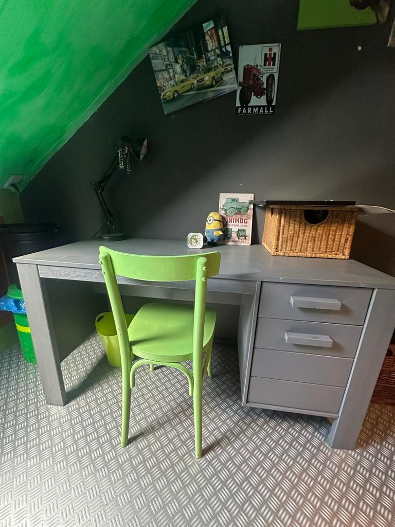 Complete set in mat grijs, stoere jongenskamer! Wegens overcompleet. Deze set bestaat uit een stevig bureau met lades, een comfortabel bed ( uitschuifbaar of met opberglades eronder) en een bijpassend