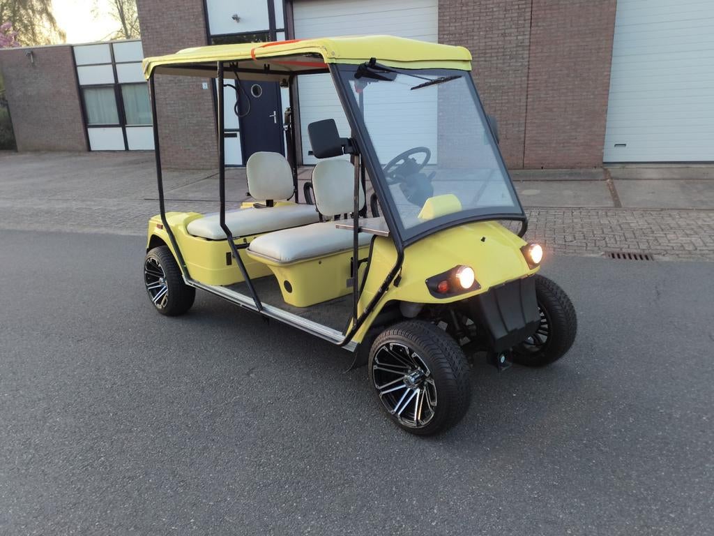 Golfkar met groot lithium pakket nog geen 400 kilometer gereden is dan ook zo goed als nieuw voorzien van nieuwe chrome velgen set mag gereden worden met auto kenteken rijd 45kmh zeer krachtig marge pZo goed als nieuw Ophalen