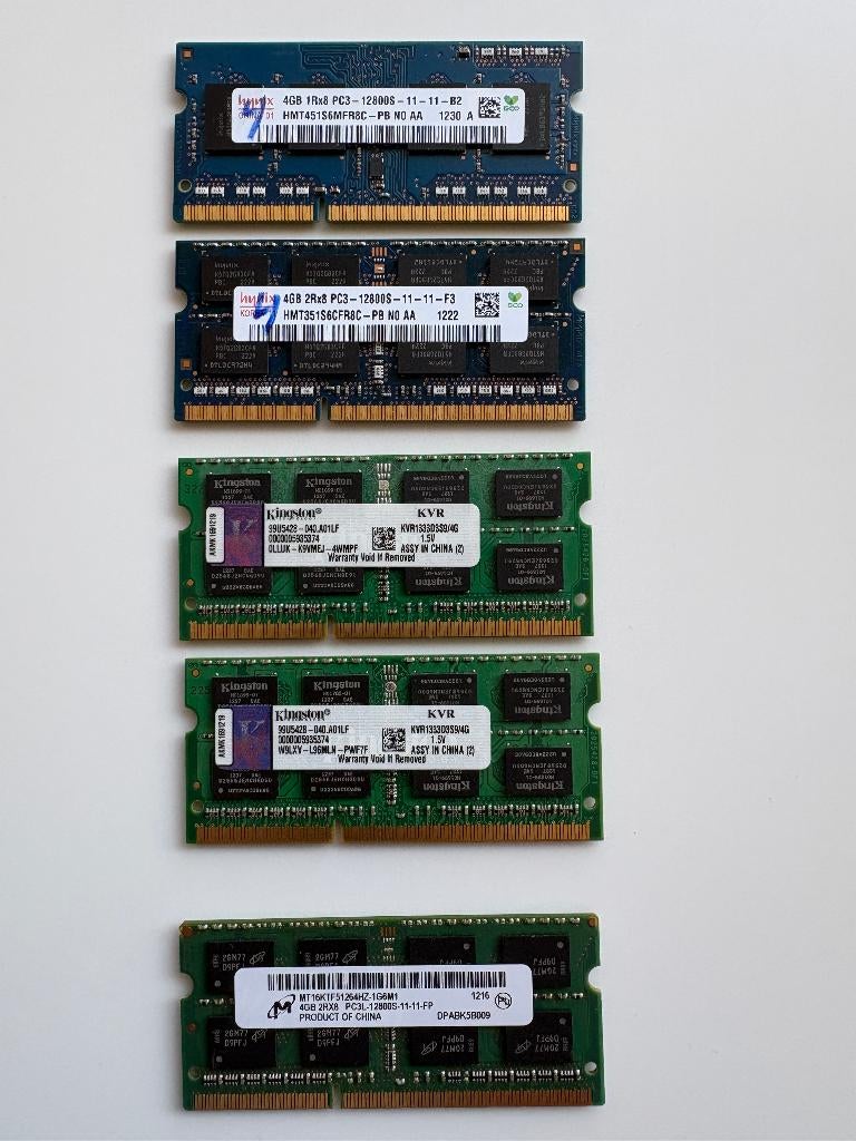 Alles in 1 koop. Prijs voor 6 stuks. Geen onderhandelingen. Deze 4gb en de 8gb ddr3 so-dimm ram-module is bedoeld voor laptops en compacte systemen met ddr3-geheugen. Omdat het om een mix van merken ,Gebruikt Ophalen of Verzenden