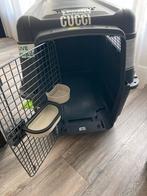 Grote transportbench 1x gebruikt incl trechter- voer en waterbak textiele onderlegger wielen geschikt voor luchtvervoer ivm 2 bodemcompartimenten tevens nog een sticker.