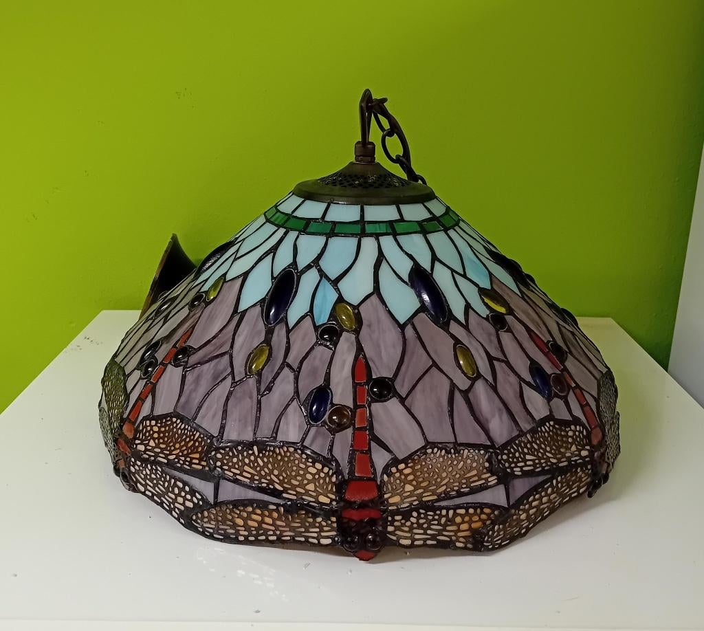 Zeer mooie tiffany stijl hanglamp, zonder beschadigingen. Voor meer info: frans 2de hands ganzeweide 69 6413gb heerlen 0455233848