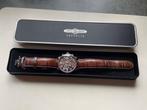Zwitsers quarz chronograaf van het merk zeppelin met het referentienr: 7684-3 ronda 5020b. 40 Mm horlogekast van staal. Amberkleurige wijzerplaat met witte arabische cijfers en lichtgevende wijzers. W