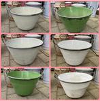 Grote originele hongaarse emaille goulash pannen. Leuk voor in de tuin met plantjes er in of mini vijver , of met een feestje ijsblokjes erin met u favoriete drankje. 24,50 Per stuk garage 63 van kins