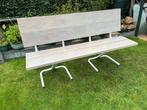 Te koop van hergebruikte tafels en stoeltjes maak ik bankjes. Ze zijn geschikt voor binnen en buiten. Het houtwerk is 3 x gebeitst
